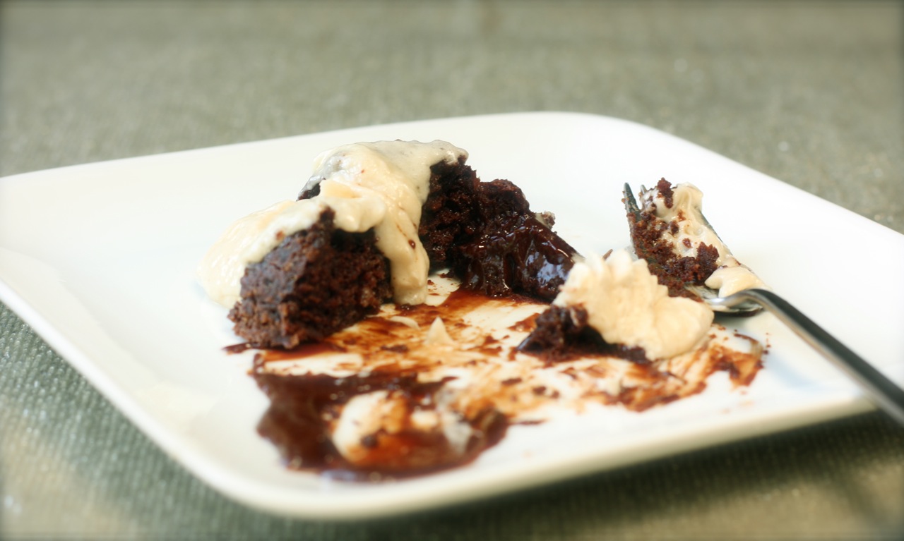 This amazing little cake is quite simple to make and is very adaptable to whatever ingredients you have on hand. I’ve topped it with fresh raspberries, drizzled it with raspberry and chocolate sauce, and served it with a variety of ice creams. In culinary school, I made a version of this cake – pink peppercorn chocolate cake with a cherry and kirsch reduction – for my final exams. It received rave reviews and I scored the highest marks in my baking class from my chef instructor. Thank you Jean-Georges! Imagine how absolutely giddy and excited I was when, a year later, fortunate enough to be having dinner at his namesake restaurant, Jean-Georges, one of the best ranked restaurants in the country, I saw him standing there as we walked in. He looked resplendent in his chef whites. I just stood there stammering and swooning. Nine years later, I still rank that meal as the BEST meal I’ve ever had in my life!!! Yes, of course, I had the cake.