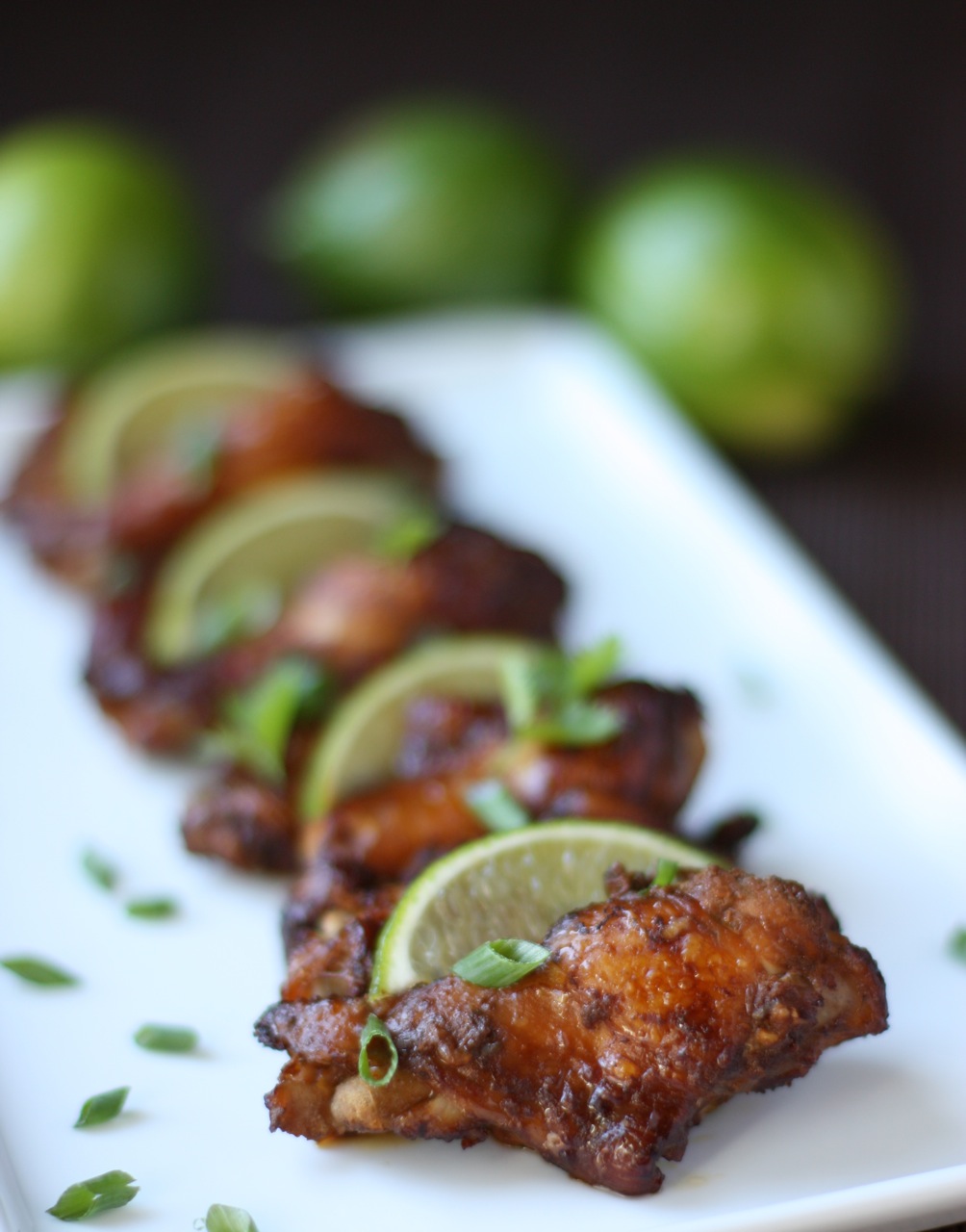 football food: asian chicken wings with lime, ginger, and soy sauce