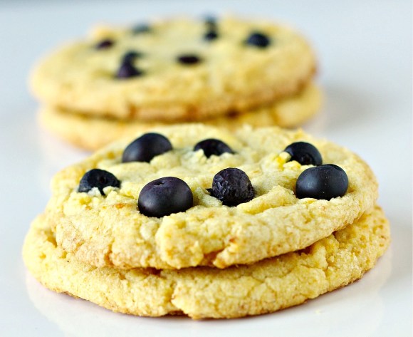 I added some fresh blueberries on a few of the cookies, but I didn’t like them as much because they dulled the great corn flavor. Without that distinct corn flavor, the blueberry cookies tasted more like a sugar cookie.  Next time, I’ll stick to the original recipe.