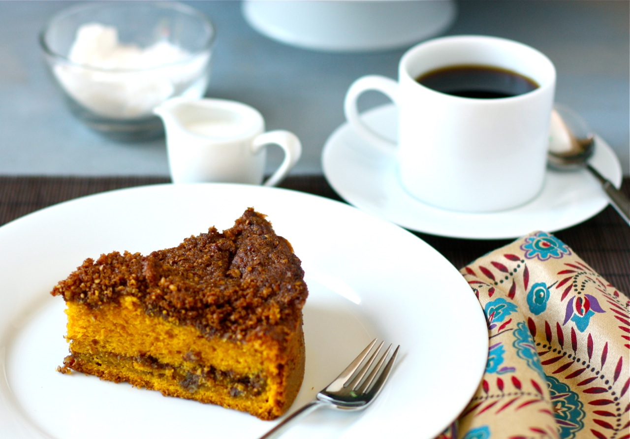 I love the color of this cake, and the use of ‘pumpkin pie’ spices in the streusel topping.