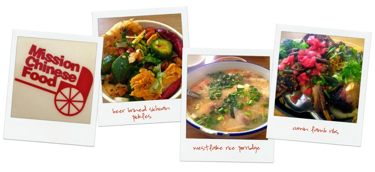 We’ve wanted to eat at Mission Chinese Food since it opened, for its “Americanized” Chinese Food, but we haven’t made it until now. It’s a small, hole-in-the-wall restaurant, with dim lighting provided by strings of Christmas lights, loud, club-like music, and food served on mismatched, sometimes chipped plates and bowls, which all adds to the whole experience. Service was ok; abrupt, efficient and to the point, if not a bit rushed. The place was empty when we arrived soon after it opened, but it filled up quickly.
