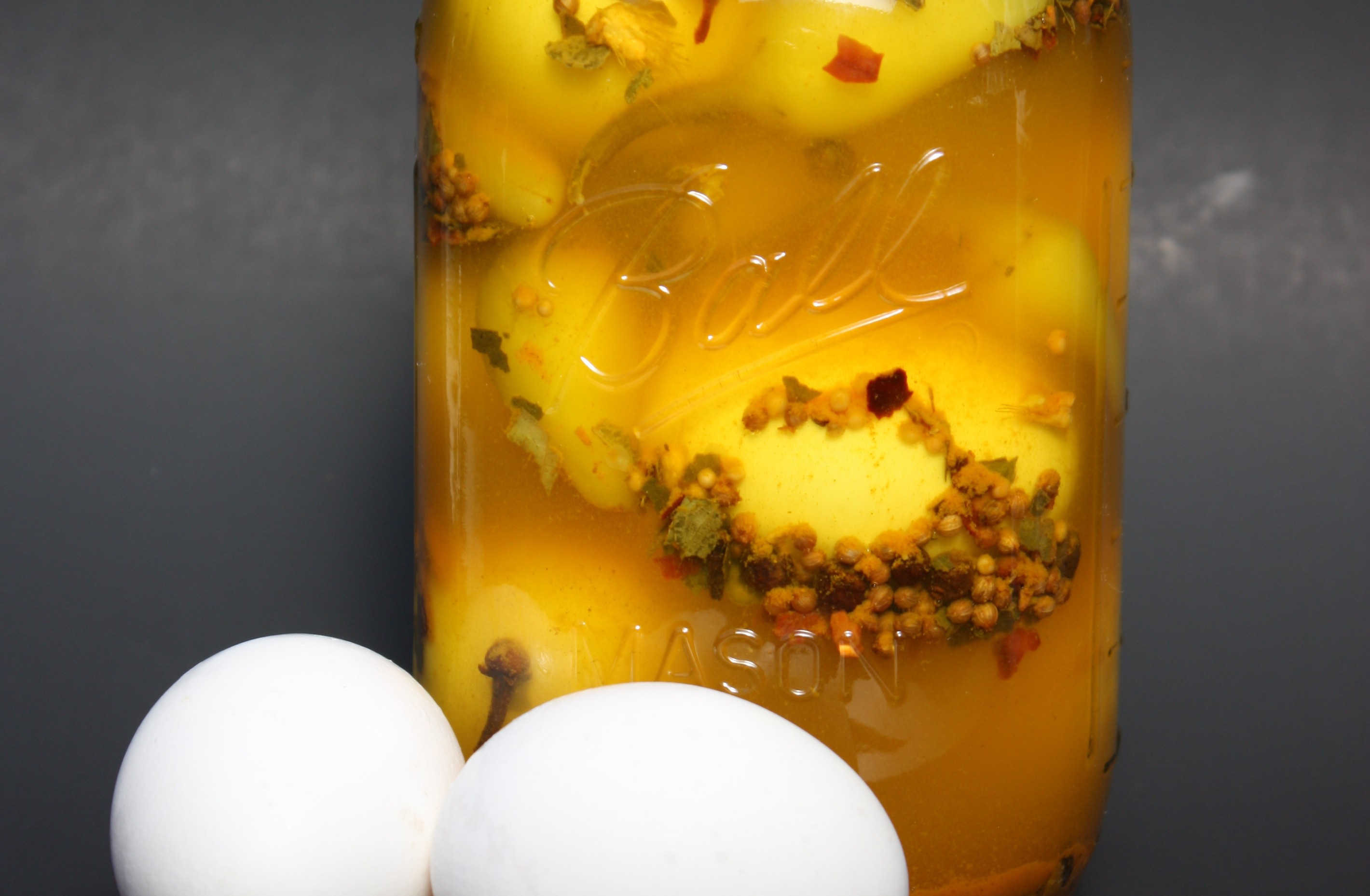 So far this summer, I have harvested about 2 1/2 pounds of jalapeños. Pickling these medium-hot peppers in vinegar is a fast and easy way to preserve them. These are much better than the canned ones that are found at grocery stores. To retain their crisp texture, jalapeños are picked once they turn a shiny dark green color. If left on the plant, the peppers will eventually turn red. It is best to pickle jalapeños before they change colors because fully-ripe red ones, while sweeter, end up softer than the green ones.
