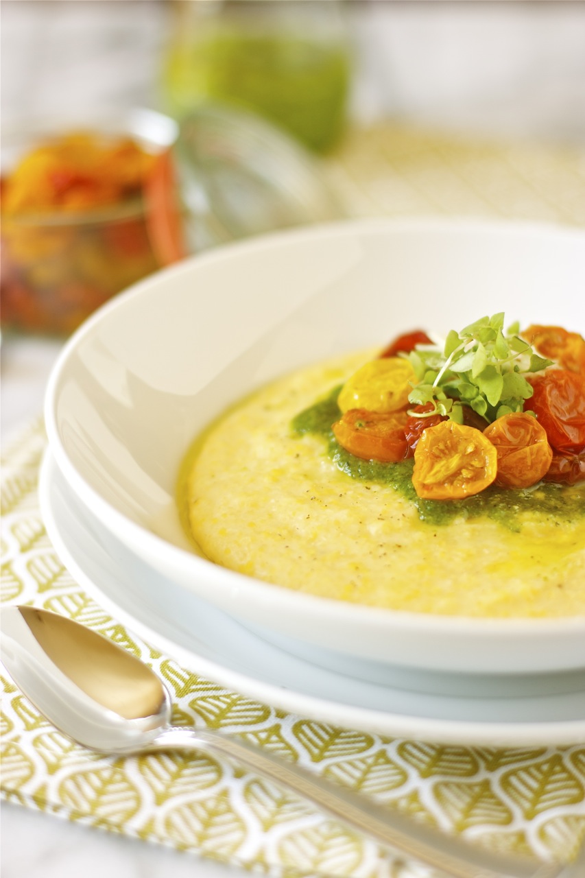 polenta with slow-roasted cherry tomatoes and pesto