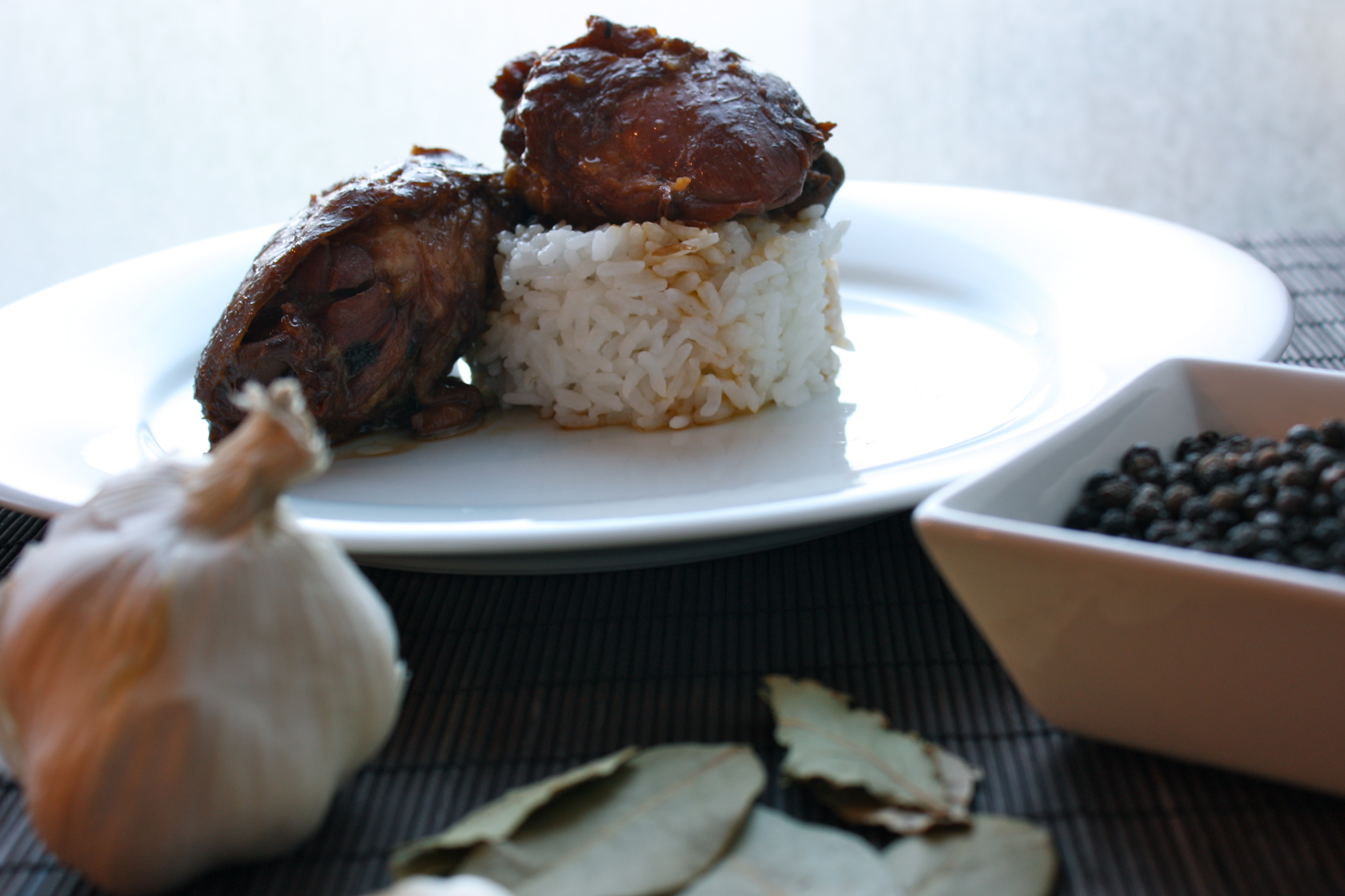 For tonight’s dinner, Chris did a quick Google search and found a good basic recipe from Foodnetwork.com. This is the style of adobo I am accustomed to eating. I tweaked the recipe below for a little more authentic taste.