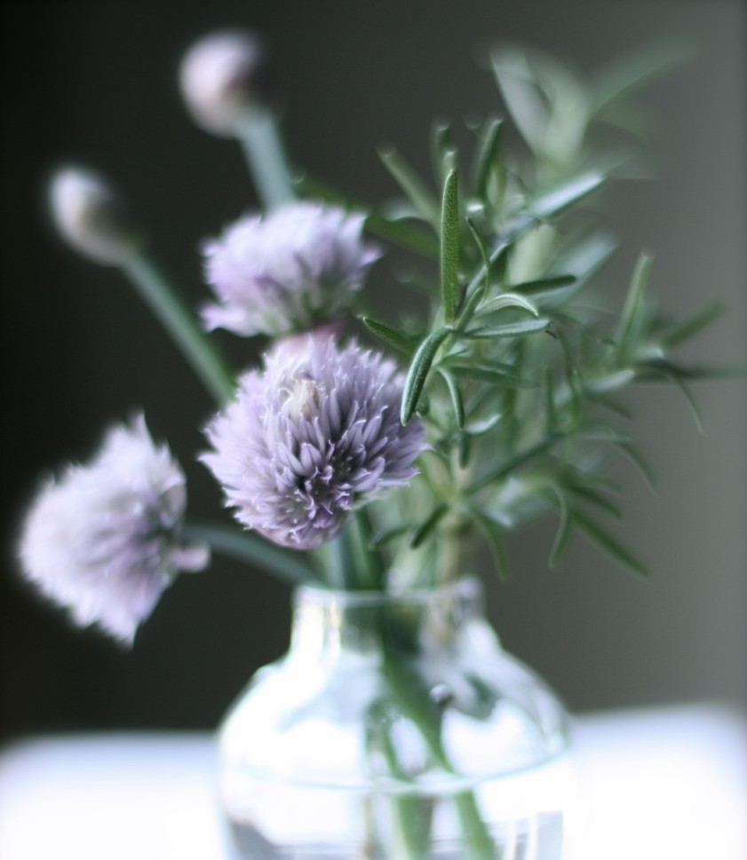 Chives are one of the easiest herbs to grow, and are a staple in my herb garden. They are hardy perennial plants from the same family as onions, leeks, and garlic. They grow in clumps with narrow, hollow leaves that reach about 6 to 12 inches in height. In the spring, they produce a mass of beautiful, globe-shaped violet blossoms which, I learned recently, are also edible. I planted a couple of small plants about three years ago, and, since then, I’ve been spoiled with an abundant supply of chives all year round.